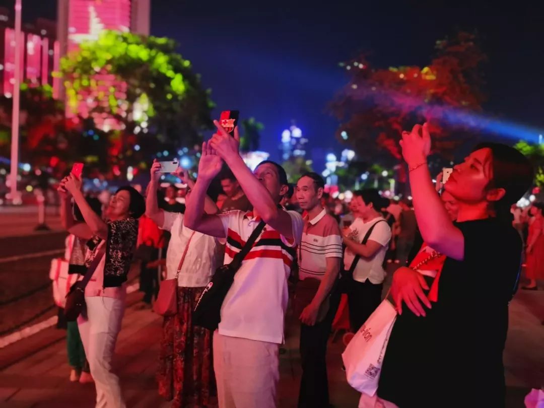 市民李洁之是一名摄影爱好者,家住越秀区的他当天搭乘地铁来到海珠广场,专程来此拍摄视频,“想要分享给亲朋好友们。”他说。1992年来到广州的他,见证着广州一步步发展至今,“变化挺大的。国家强大了,人民生活也变好了,退休后我也能闲下来四处走走,我也想把这份喜悦记录下来。”