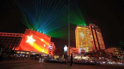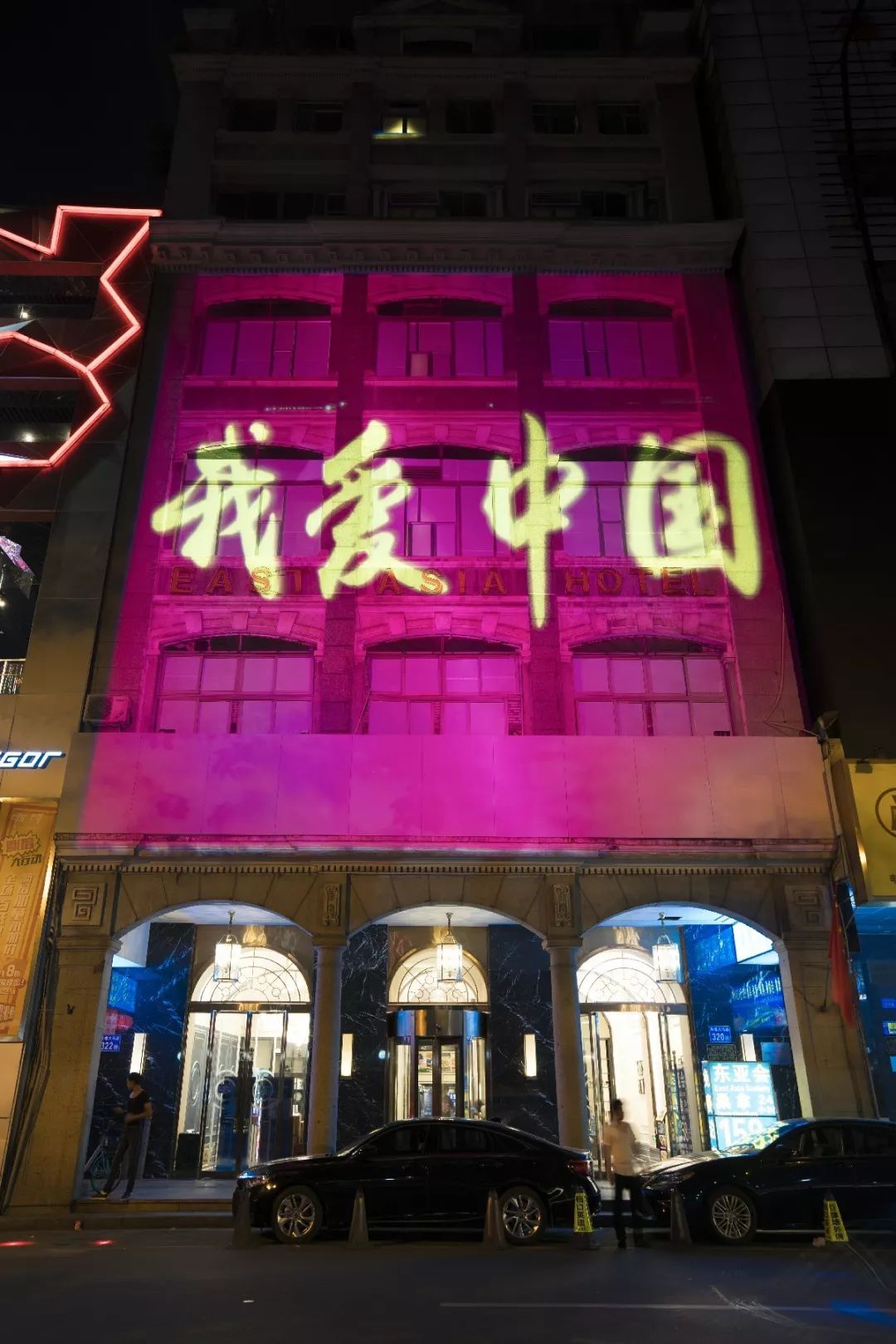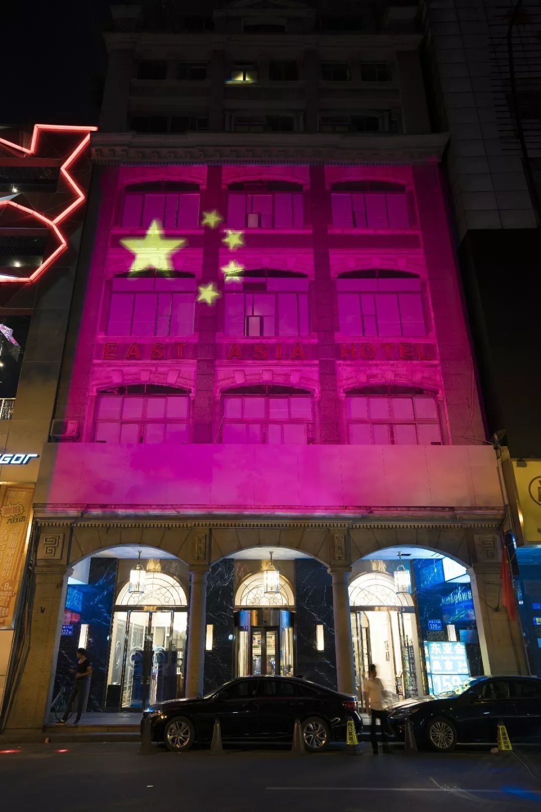 1949年10月,广州解放的第一面五星红旗在东亚大酒店那里冉冉升起。如今,运用投影灯重现巨幅国旗冉冉“升”起的景象,带领市民穿越时空见证历史时刻,向浴血奋战的革命先烈庄严致敬。