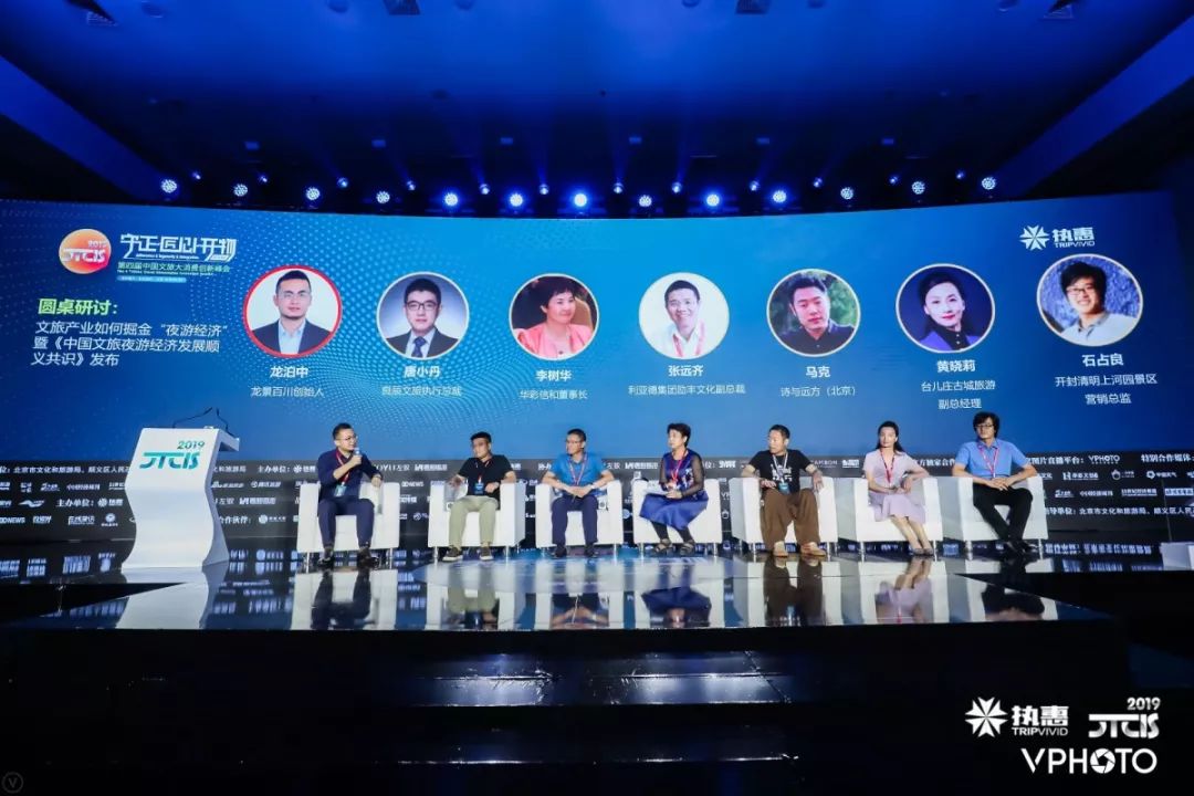 在龙景百川创始人龙泊中主持下,利亚德集团励丰文化副总裁张远齐、良辰文旅执行总裁唐小丹、华彩信和董事长李树华、诗与远方(北京)文化发展有限公司CEO马克、台儿庄古城旅游副总经理黄晓莉、开封清明上河园景区营销总监石占良进行了多维度多层面的深入研讨。