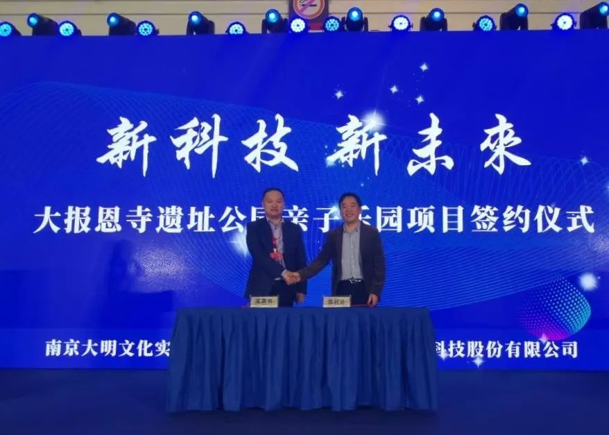 26日下午,在南京文化科技融合交易会上,励丰文化与南京大明文化实业有限责任公司就双方将共同打造的“南京大报恩寺遗址公园亲子乐园项目”举行了签约仪式,励丰文化将凭借自身“产品技术创新”、“应用集成创新”、“商业模式创新”方面的特色优势,为南京大报恩寺这座中国历史上最为悠久的佛教寺庙插上科技的“翅膀”,助力传统文化焕发新活力,赋能文旅消费体验业态创新升级。
